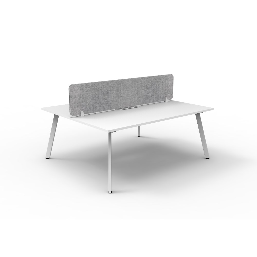 • 2 person double sided workstation with Natural White top and White Satin frame, Grey Eco screen.