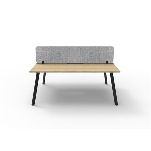 • 2 person double sided workstation with Natural Oak top and Black Satin frame, Grey Eco screen.