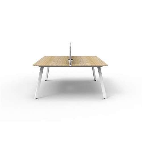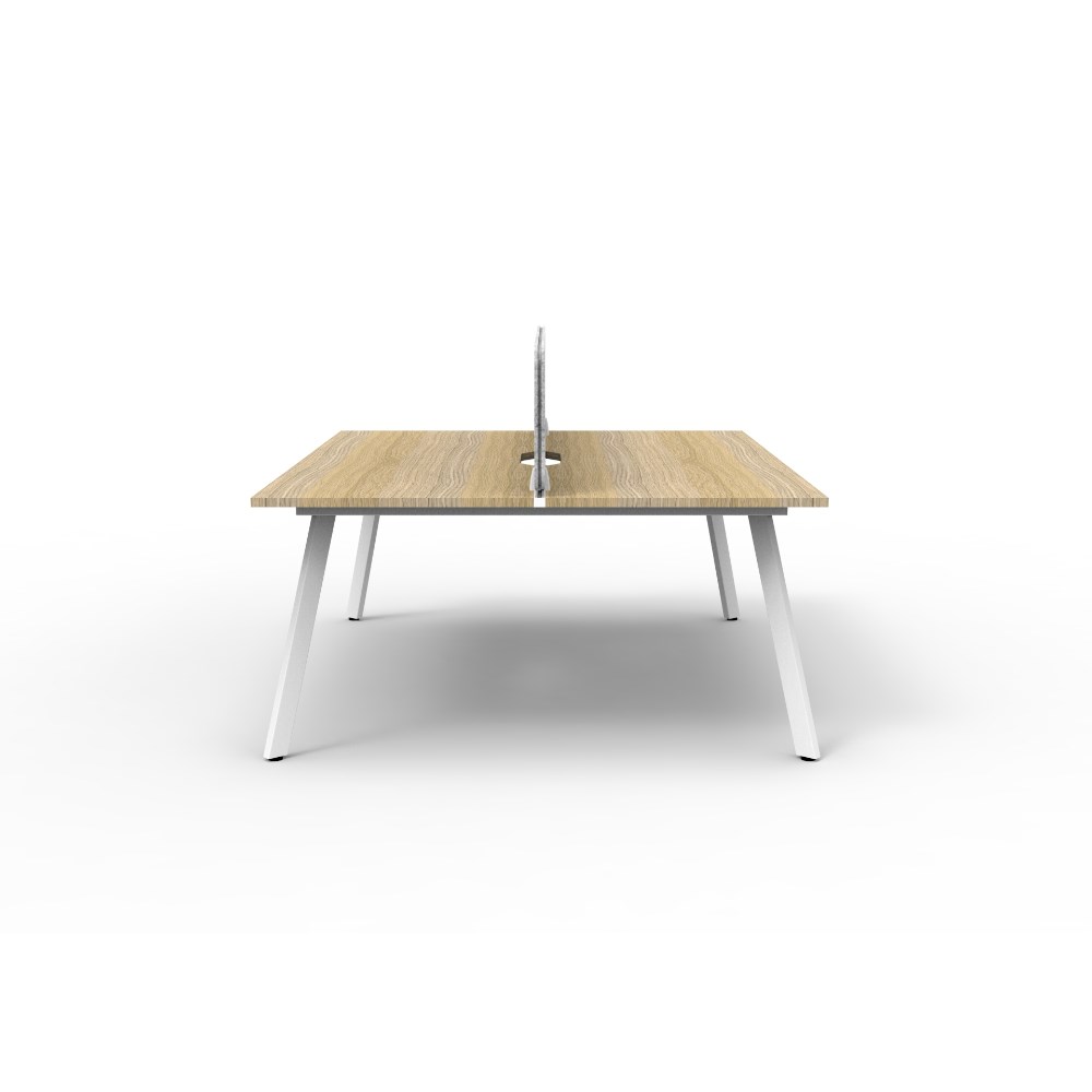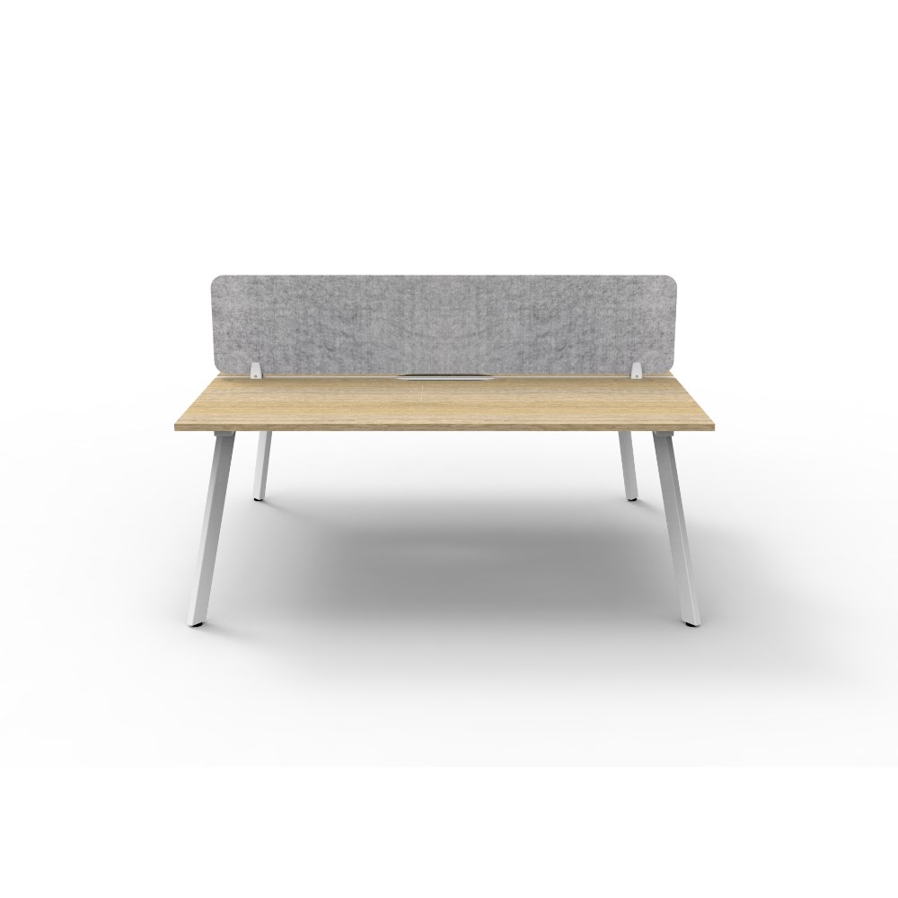 • 2 person double sided workstation with Natural Oak top and White Satin frame, Grey Eco screen.
