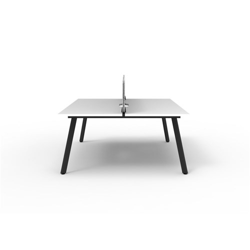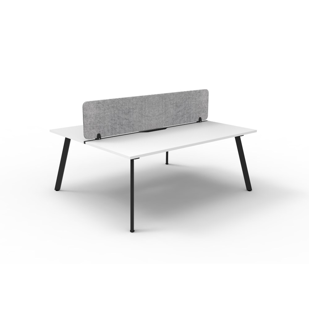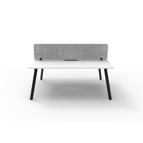 • 2 person double sided workstation with Natural White top and Black Satin frame, Grey Eco screen.