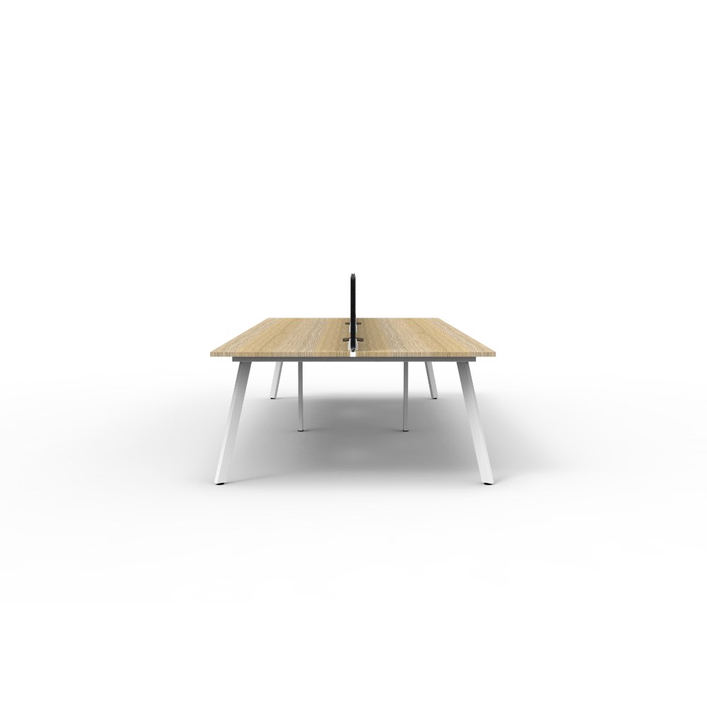 • 4 person double sided workstation with Natural Oak top and White Satin frame, Black Eco screen.