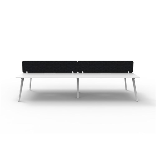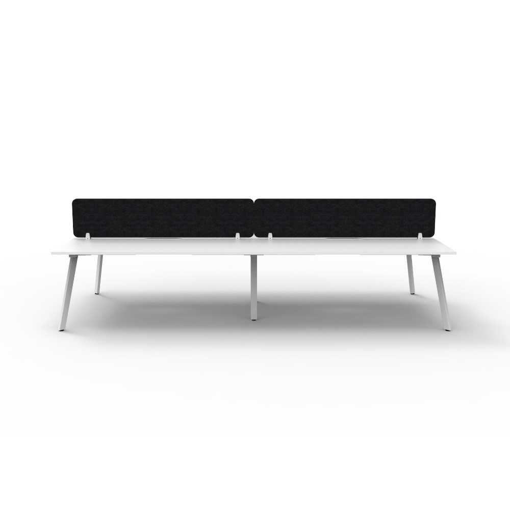 • 4 person double sided workstation with Natural White top and White Satin frame, Black Eco screen.