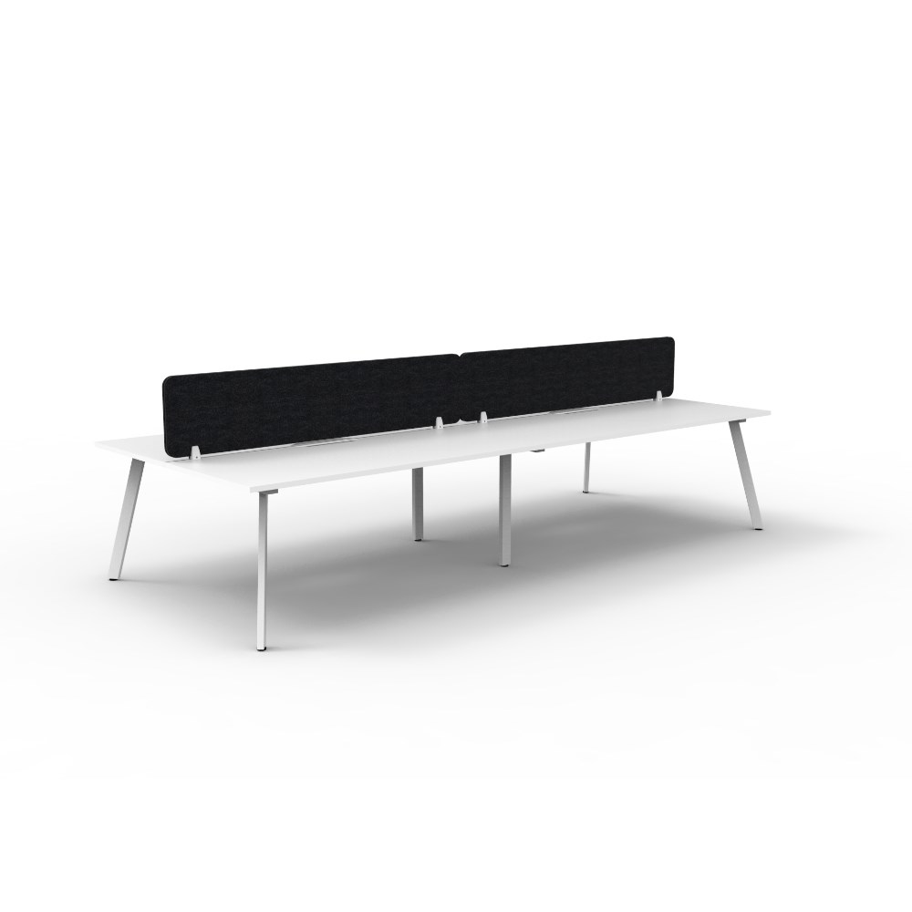 • 4 person double sided workstation with Natural White top and White Satin frame, Black Eco screen.