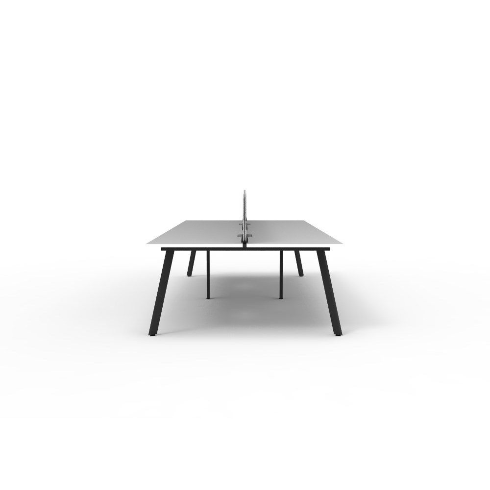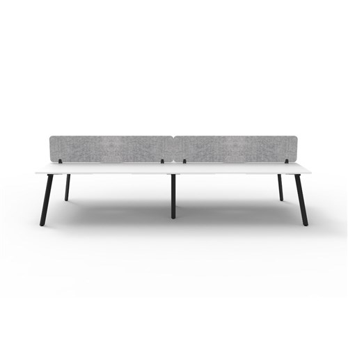 • 4 person double sided workstation with Natural White top and Black Satin frame, Grey Eco screen.
