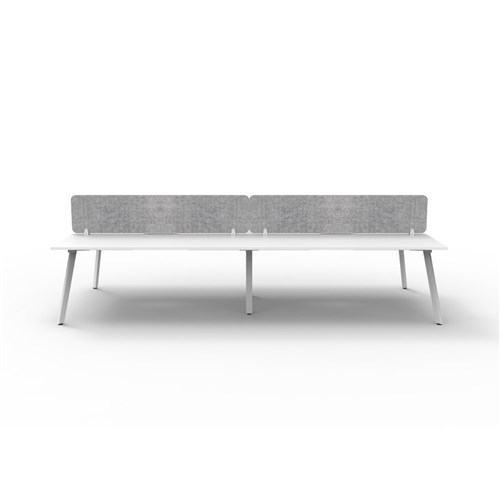 • 4 person double sided workstation with Natural White top and White Satin frame, Grey Eco screen.