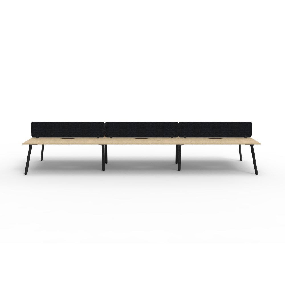 • 6 person double sided workstation with Natural Oak top and Black Satin frame, Black Eco screen.
