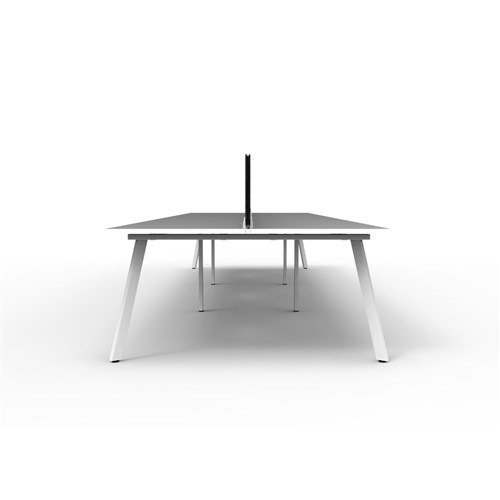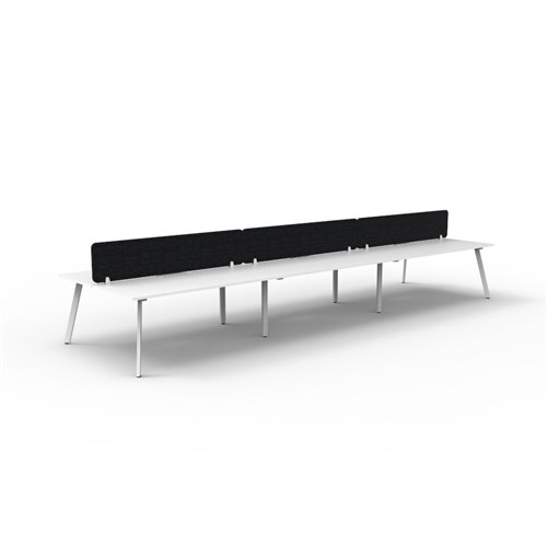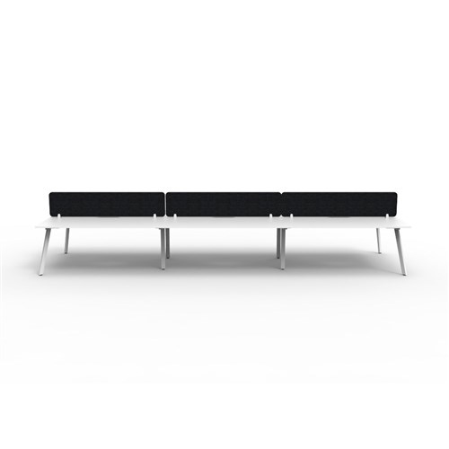 • 6 person double sided workstation with Natural White top and White Satin frame, Black Eco screen.
