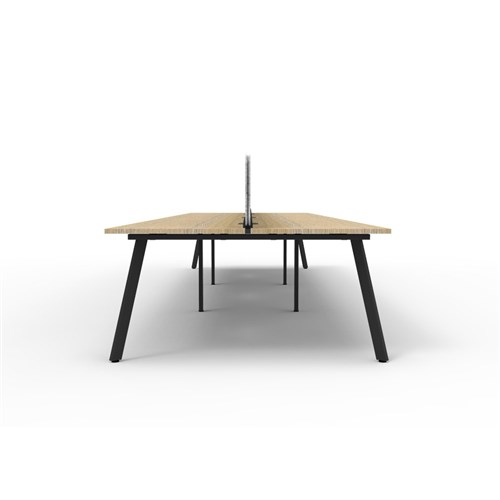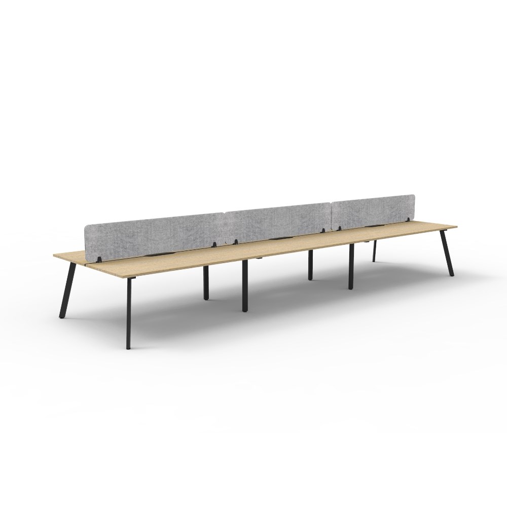 • 6 person double sided workstation with Natural Oak top and Black Satin frame, Grey Eco screen.
