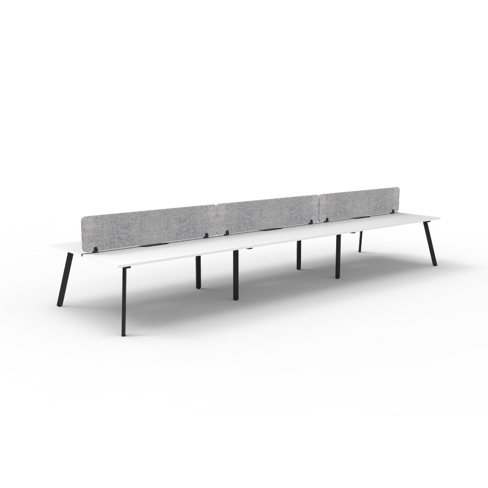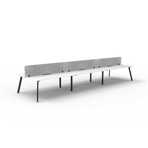 • 6 person double sided workstation with Natural White top and Black Satin frame, Grey Eco screen.
