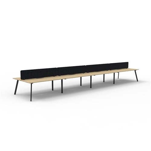 • 8 person double sided workstation with Natural Oak top and Black Satin frame, Black Eco screen.