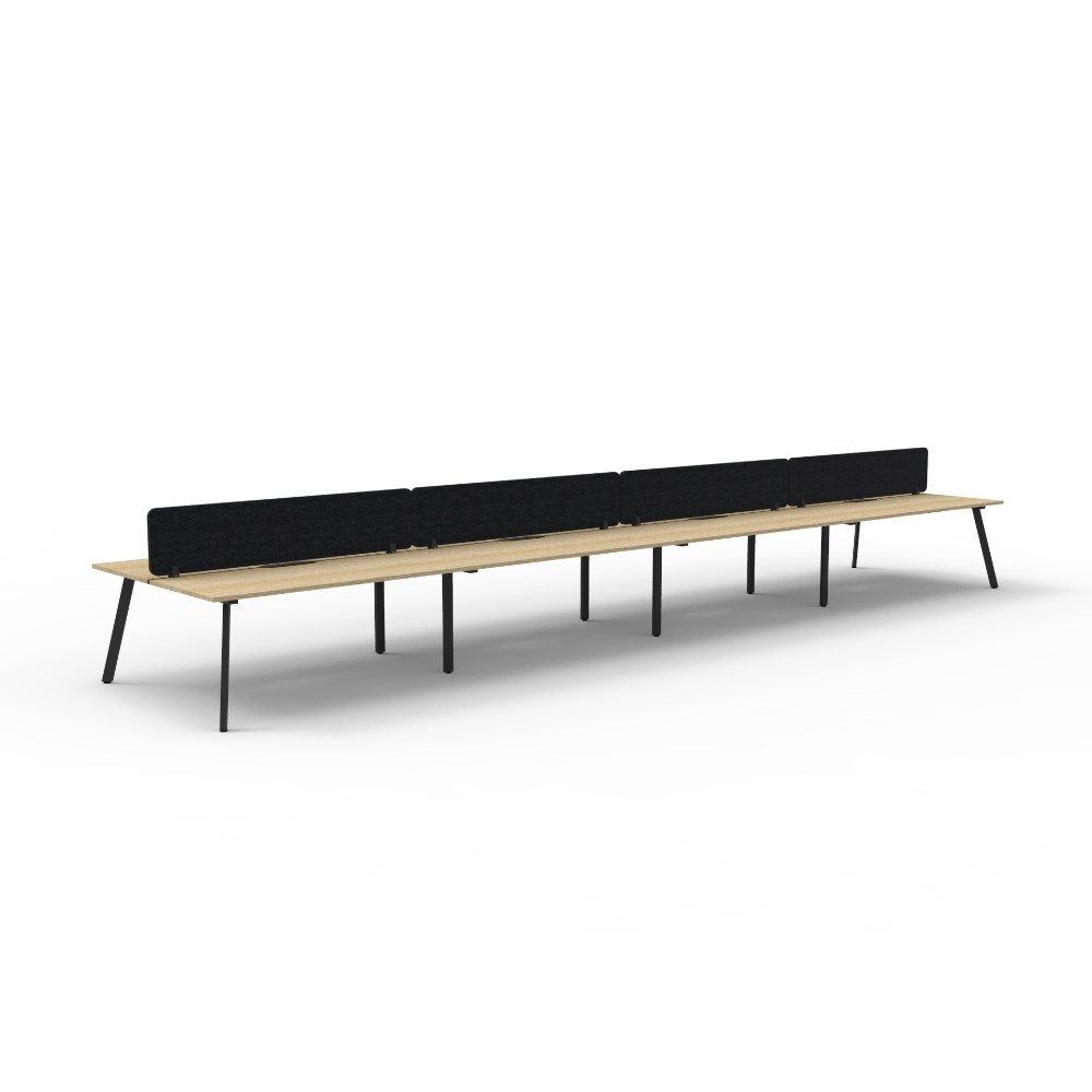 • 8 person double sided workstation with Natural Oak top and Black Satin frame, Black Eco screen.