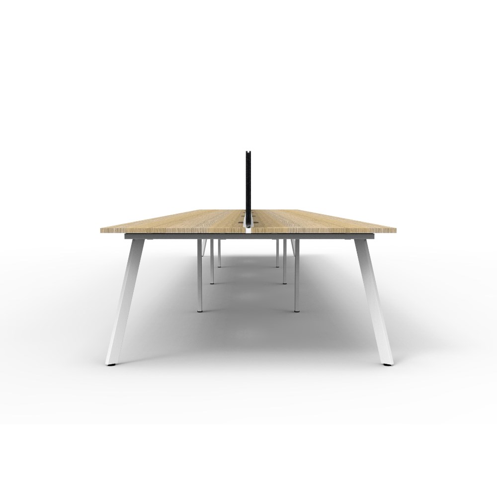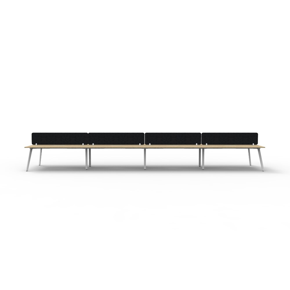 • 8 person double sided workstation with Natural Oak top and White Satin frame, Black Eco screen.