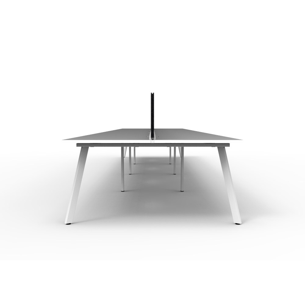 • 8 person double sided workstation with Natural White top and White Satin frame, Black Eco screen.