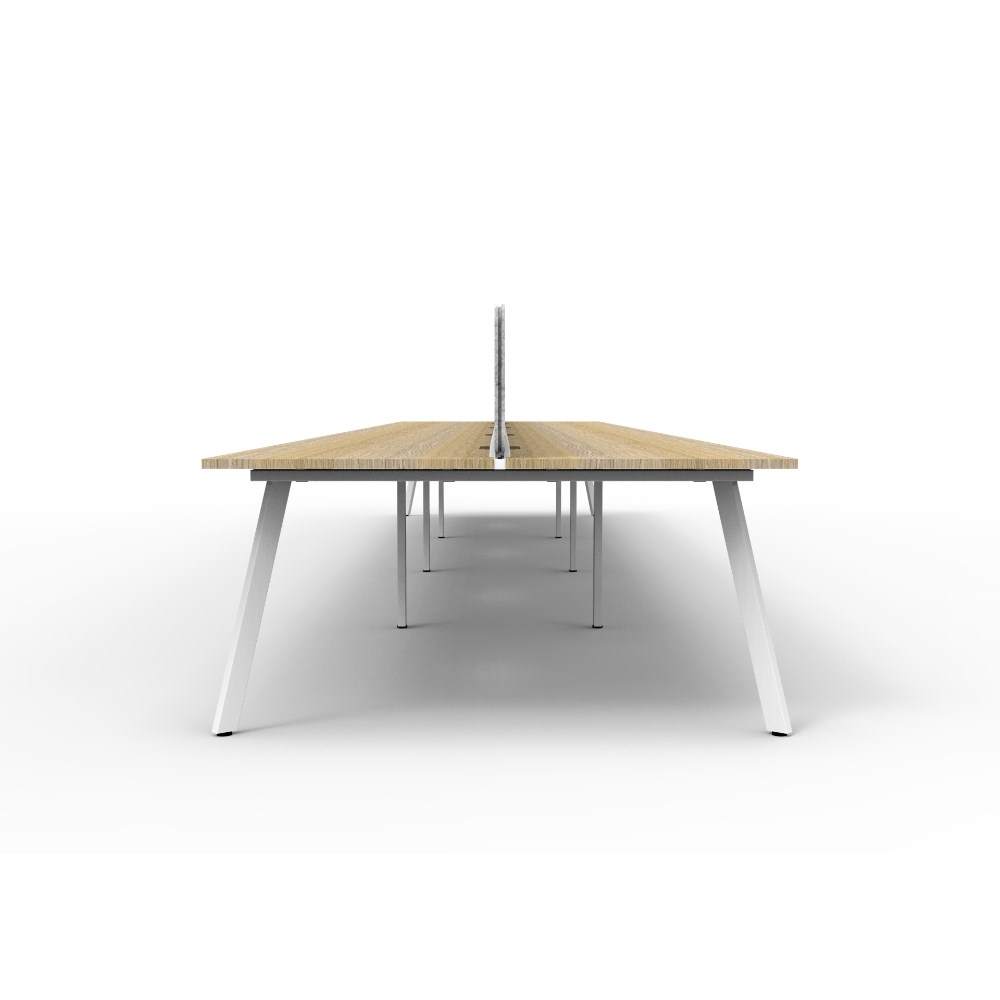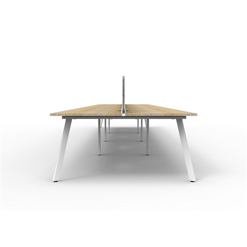 • 8 person double sided workstation with Natural Oak top and White Satin frame, Grey Eco screen.