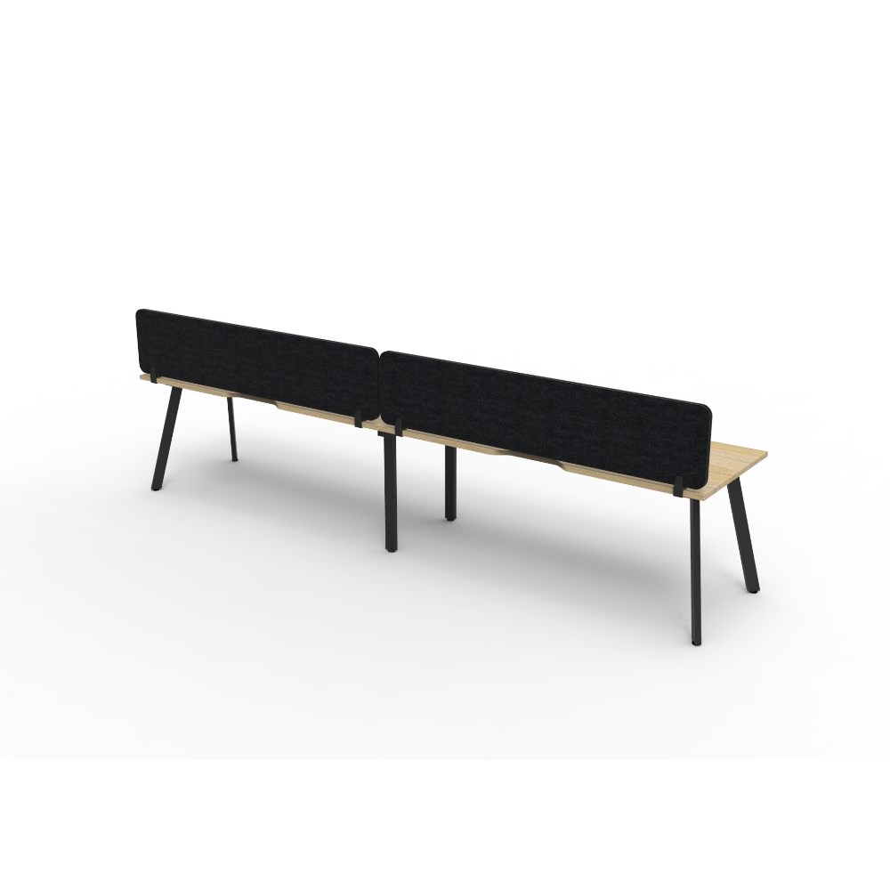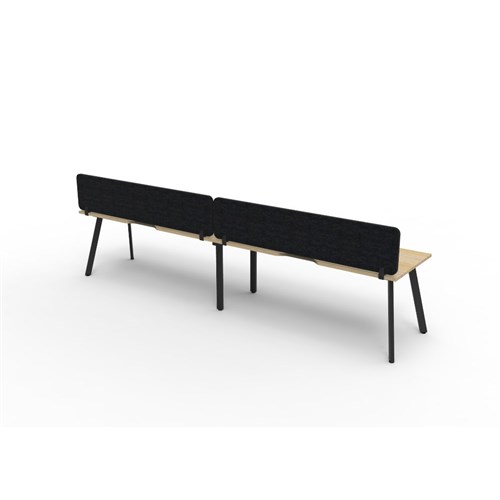 • 2 person single sided workstation with Natural Oak top and Black Satin frame, Black Eco screen.