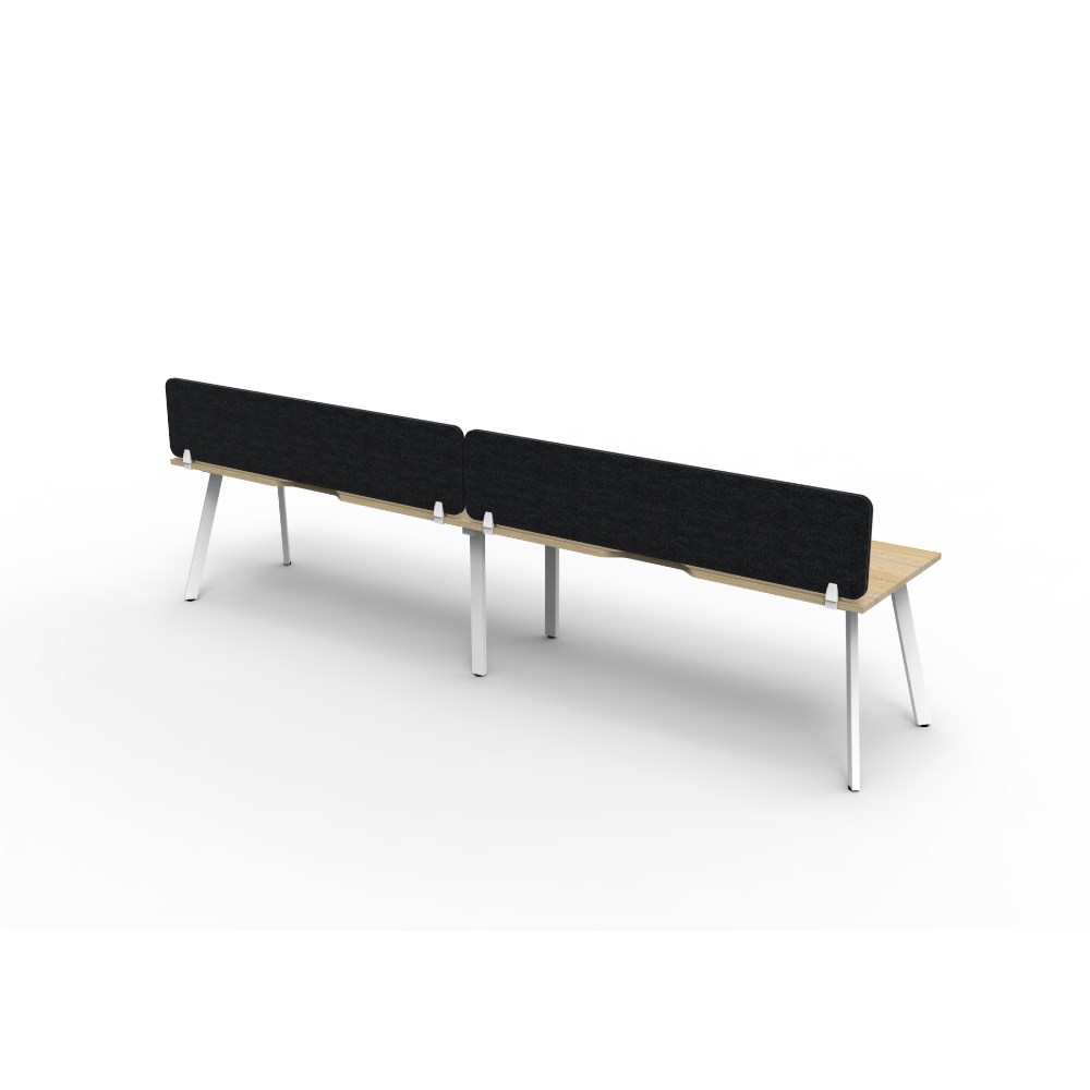 • 2 person single sided workstation with Natural Oak top and White Satin frame, Black Eco screen.