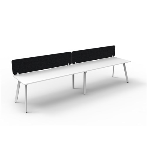 • 2 person single sided workstation with Natural White top and White Satin frame, Black Eco screen.