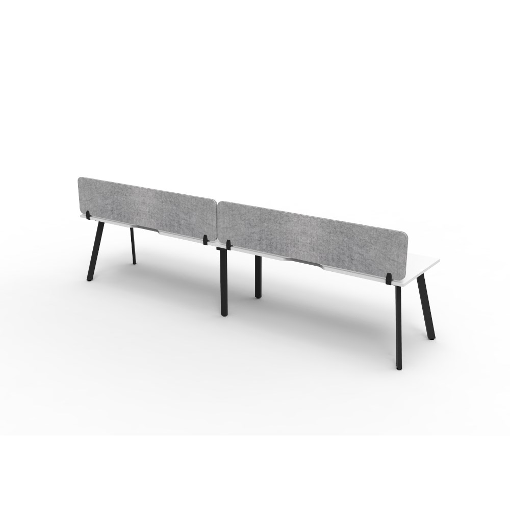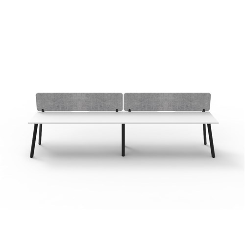• 2 person single sided workstation with Natural White top and Black Satin frame, Grey Eco screen.