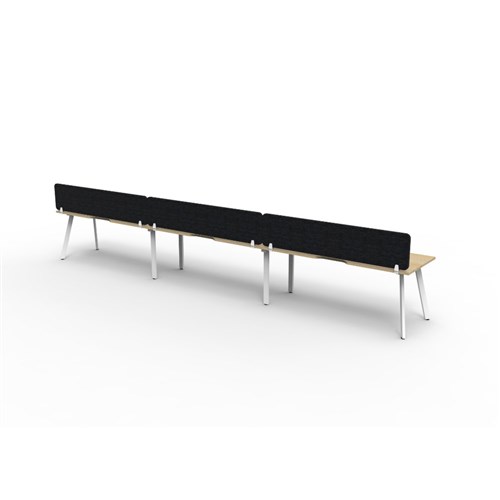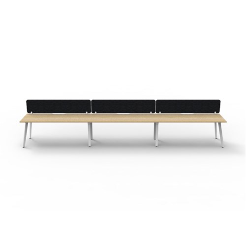 • 3 person single sided workstation with Natural Oak top and White Satin frame, Black Eco screen.