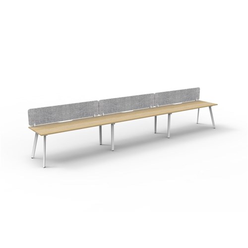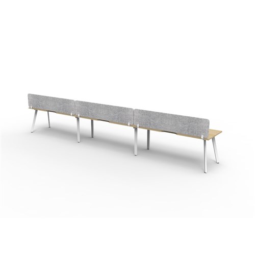• 3 person single sided workstation with Natural Oak top and White Satin frame, Grey Eco screen.