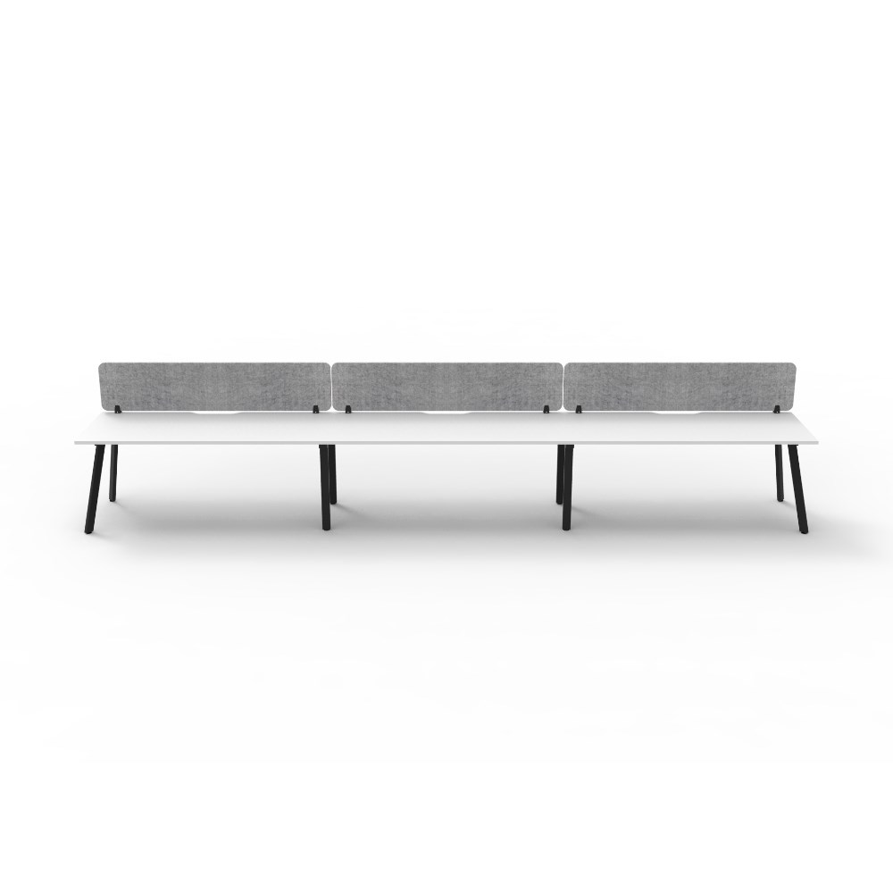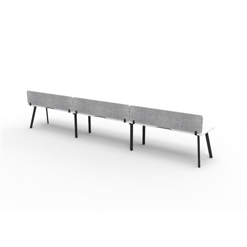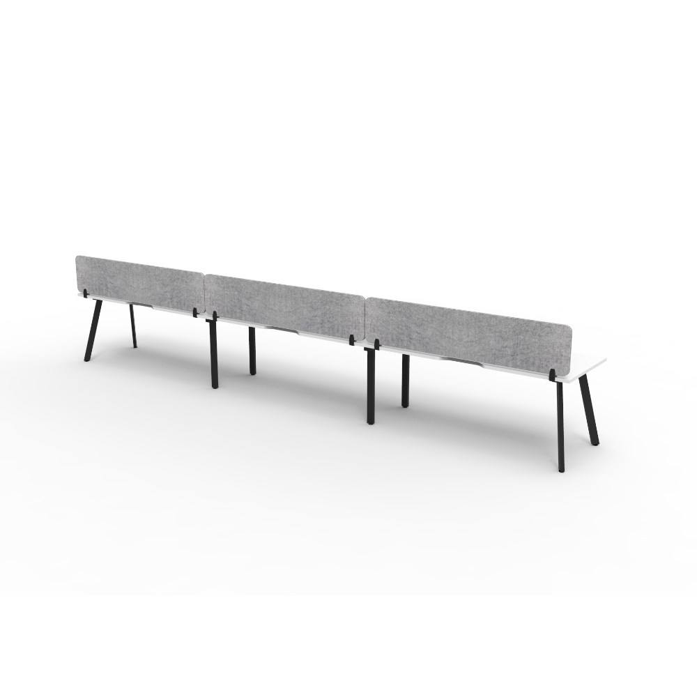• 3 person single sided workstation with Natural White top and Black Satin frame, Grey Eco screen.