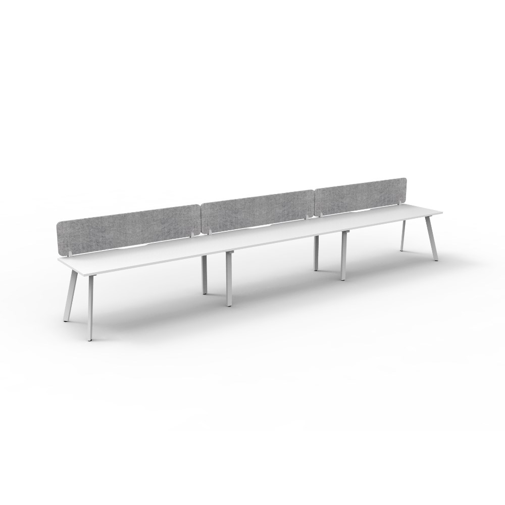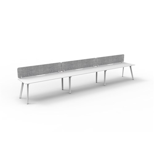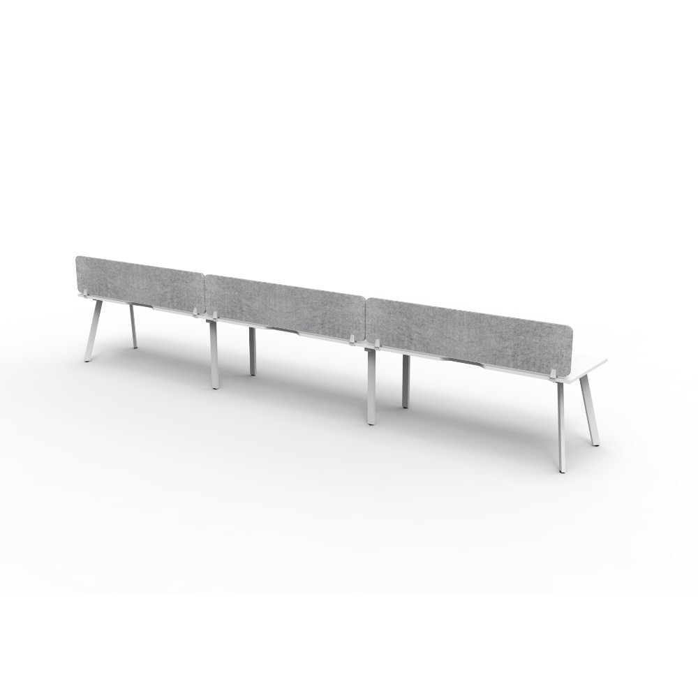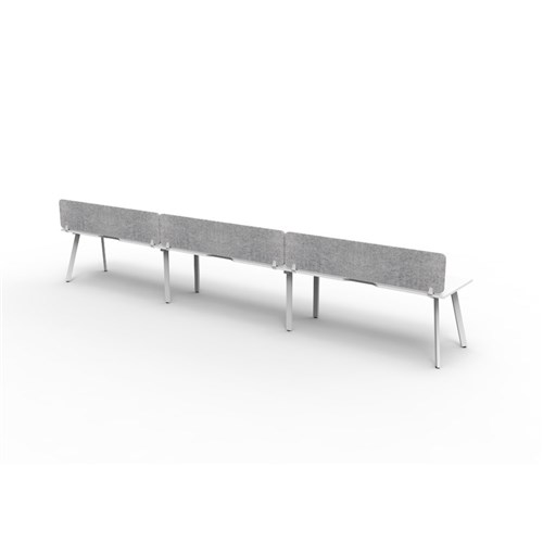 • 3 person single sided workstation with Natural White top and White Satin frame, Grey Eco screen.