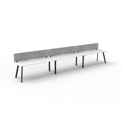 • 3 person single sided workstation with Natural White top and Black Satin frame, Grey Eco screen.