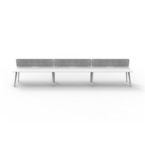 • 3 person single sided workstation with Natural White top and White Satin frame, Grey Eco screen.