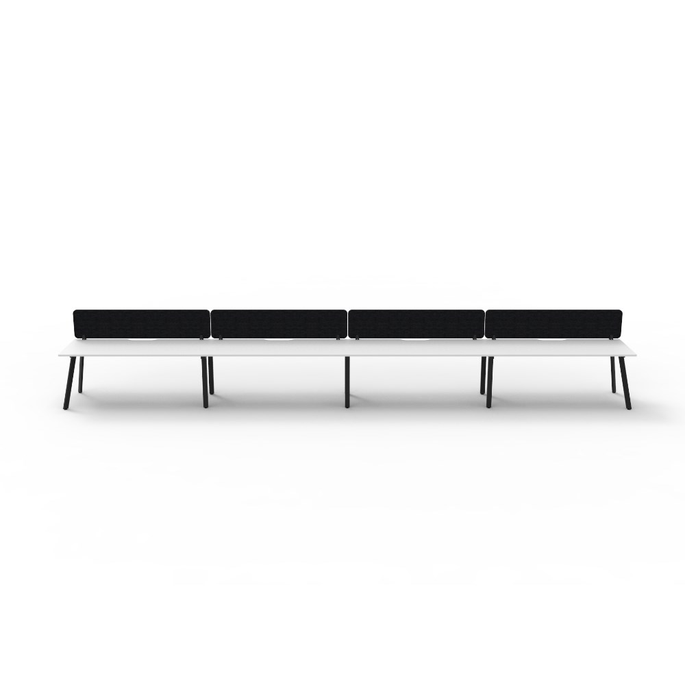 • 4 person single sided workstation with Natural White top and Black Satin frame, Black Eco screen.