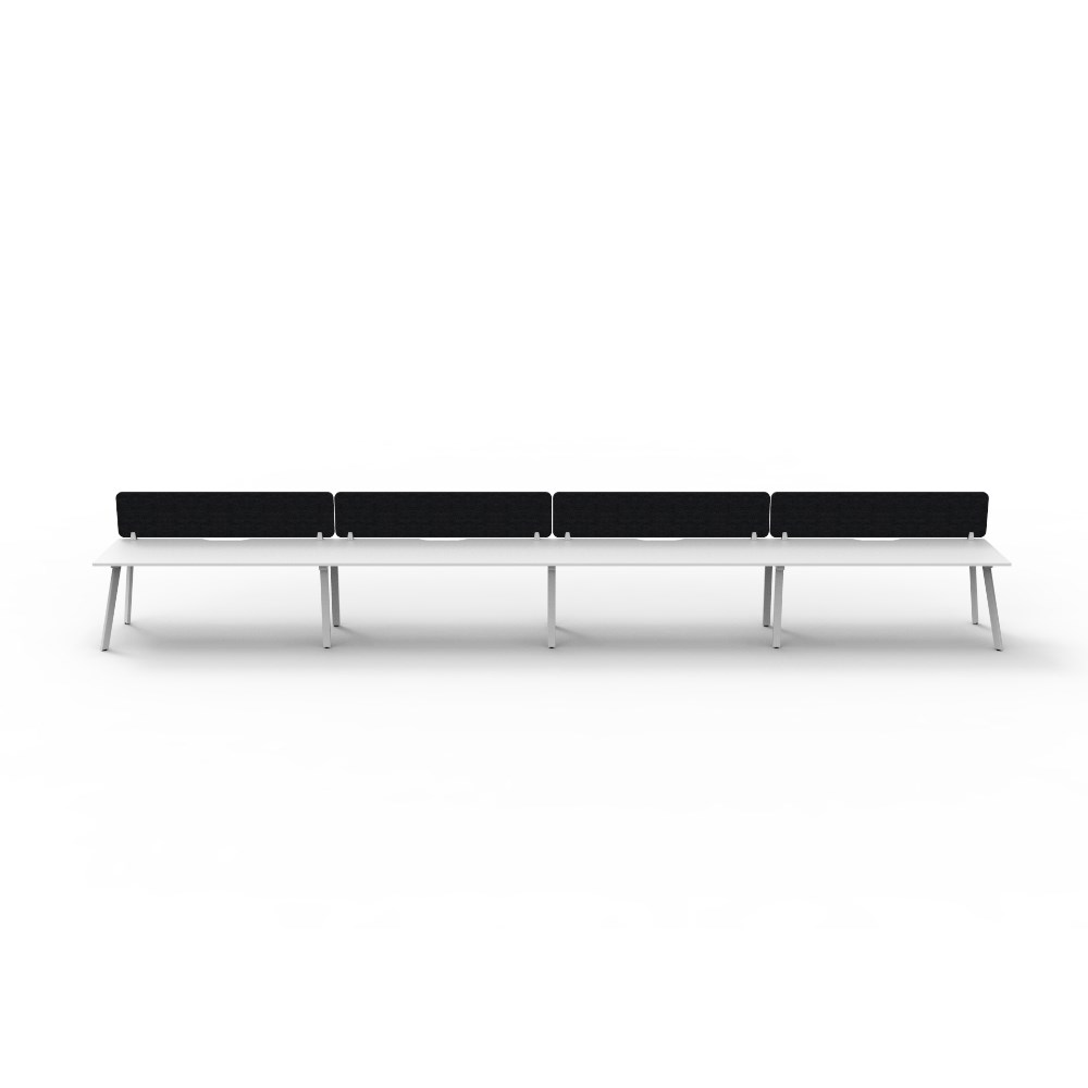 • 4 person single sided workstation with Natural White top and White Satin frame, Black Eco screen.