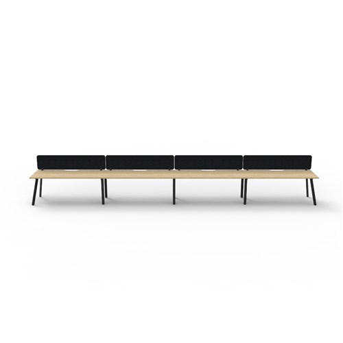 • 4 person single sided workstation with Natural Oak top and Black Satin frame, Black Eco screen.