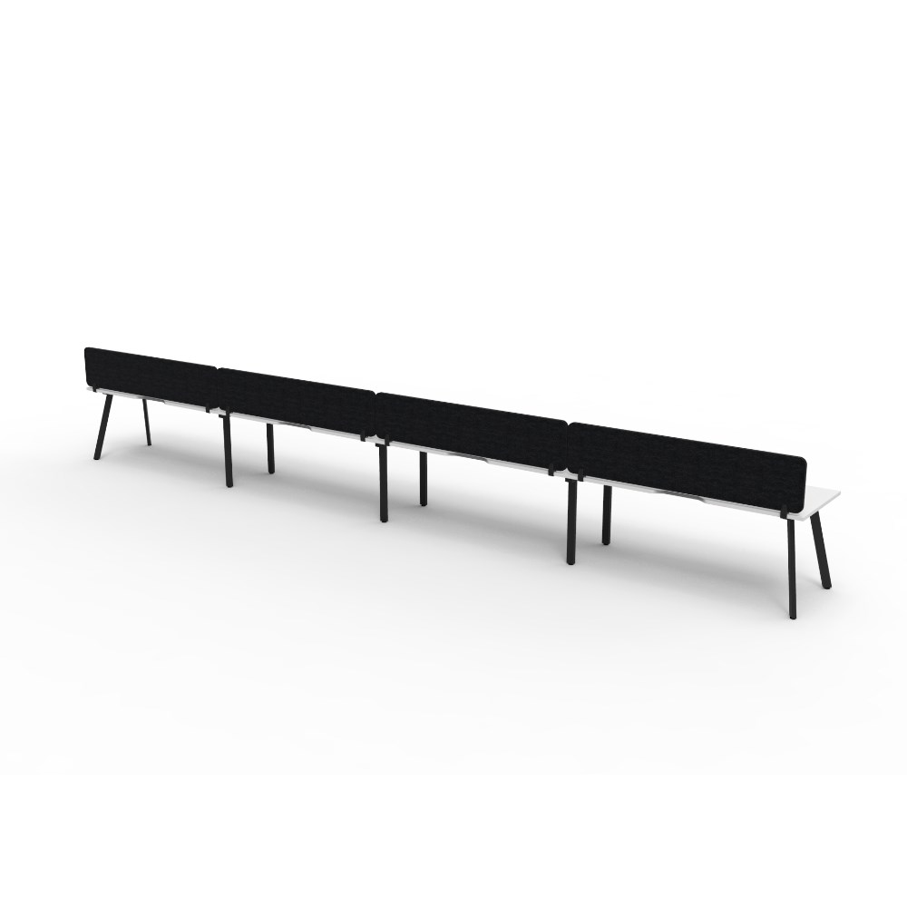 • 4 person single sided workstation with Natural White top and Black Satin frame, Black Eco screen.
