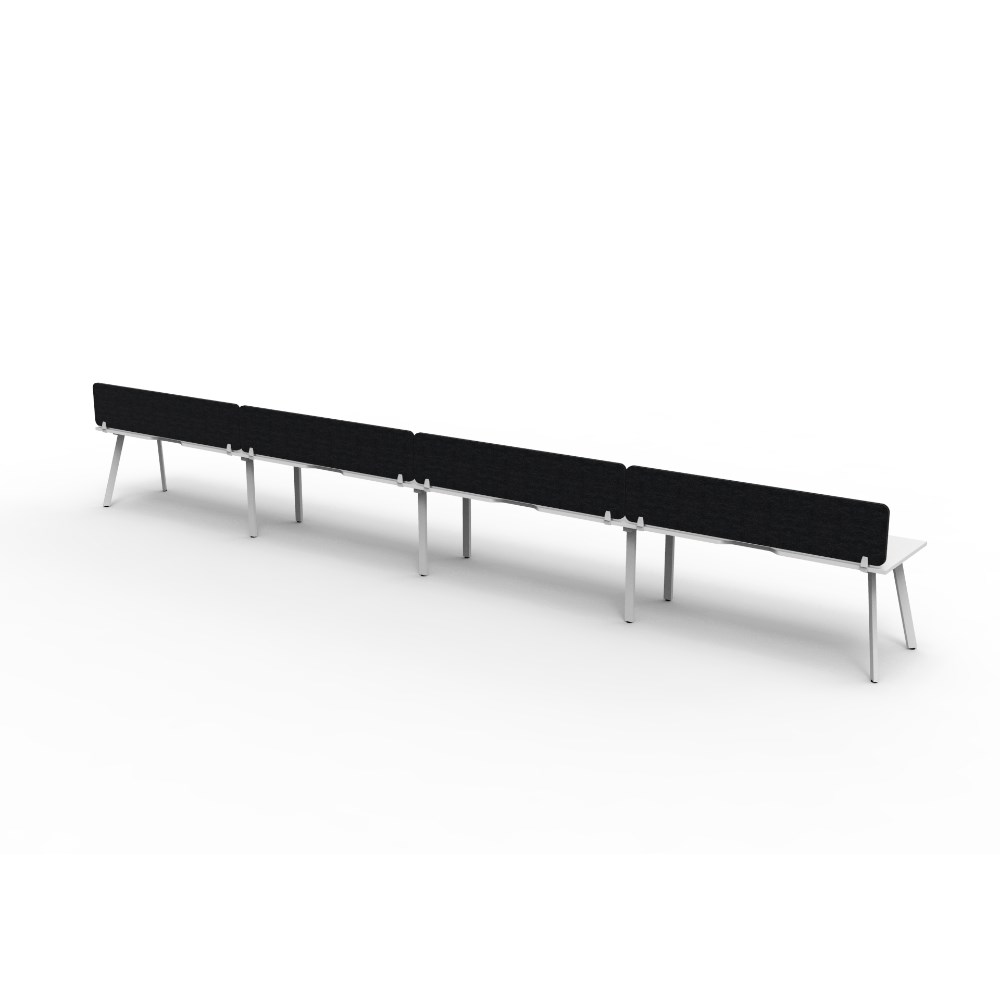 • 4 person single sided workstation with Natural White top and White Satin frame, Black Eco screen.