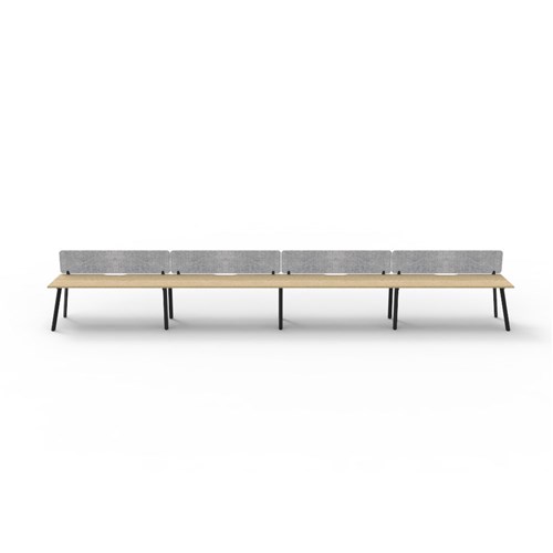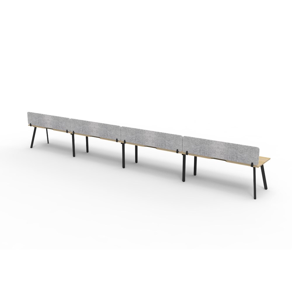 • 4 person single sided workstation with Natural Oak top and Black Satin frame, Grey Eco screen.