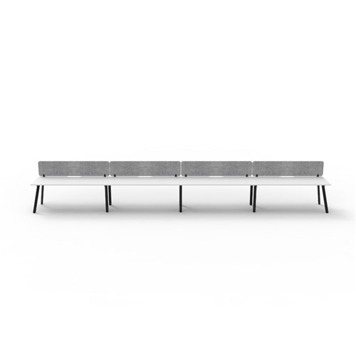 • 4 person single sided workstation with Natural White top and Black Satin frame, Grey Eco screen.
