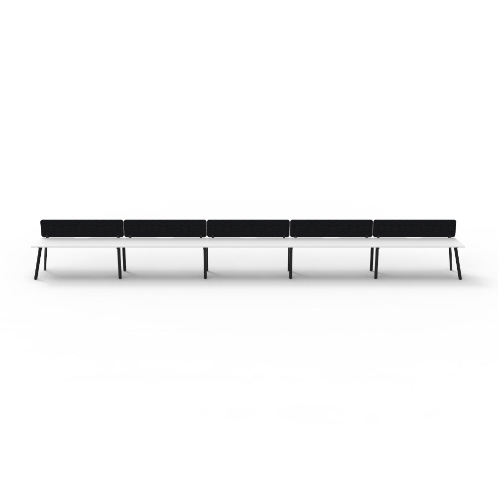 • 5 person single sided workstation with Natural White top and Black Satin frame, Black Eco screen.