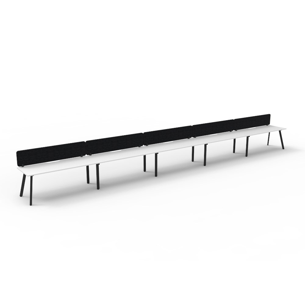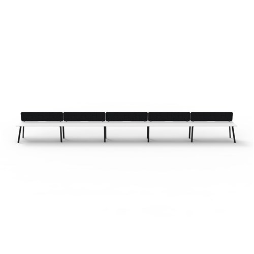 • 5 person single sided workstation with Natural White top and Black Satin frame, Black Eco screen.
