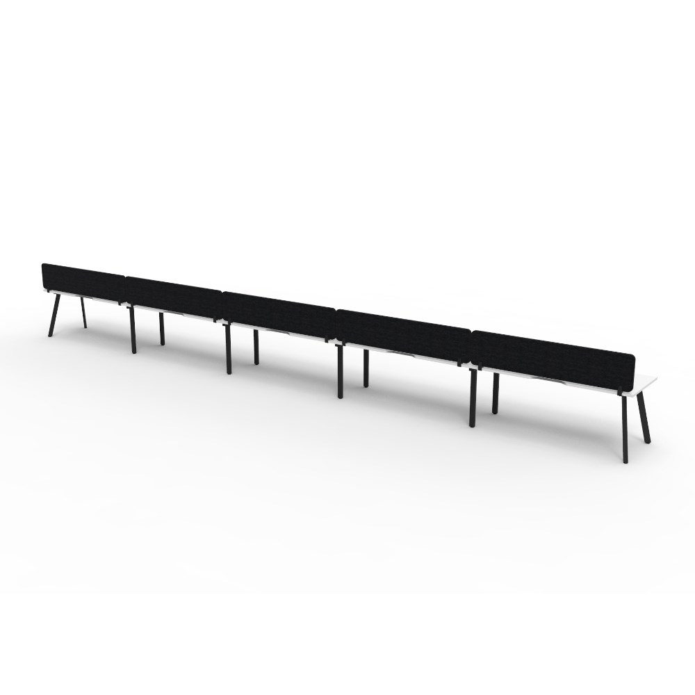 • 5 person single sided workstation with Natural White top and Black Satin frame, Black Eco screen.