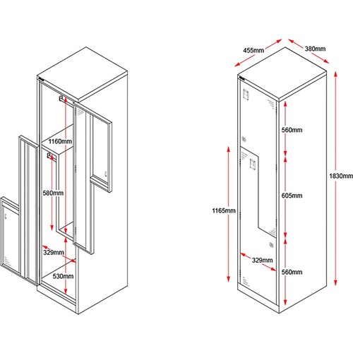 Rapidline Go Locker 2 Step Door 380W x 455D x 1830mmH Silver Grey