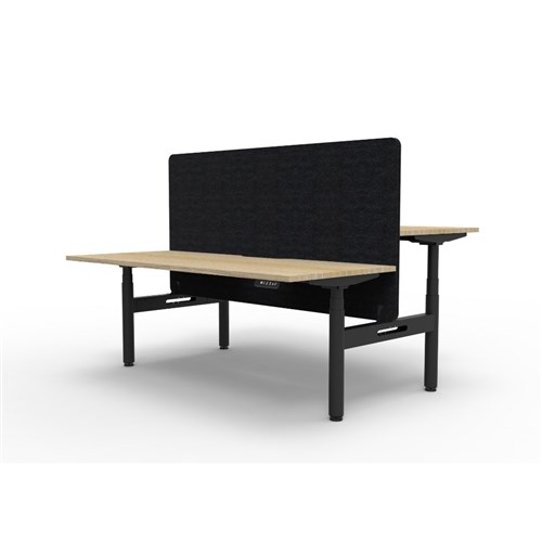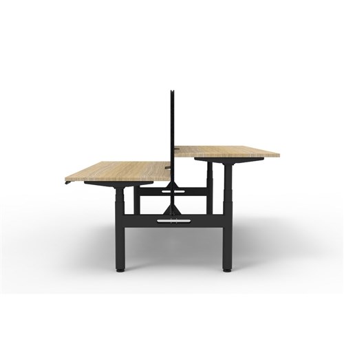 • Electric height adjustable 2 person back to back workstation with Natural Oak top and Black Satin frame, Black Eco screen.