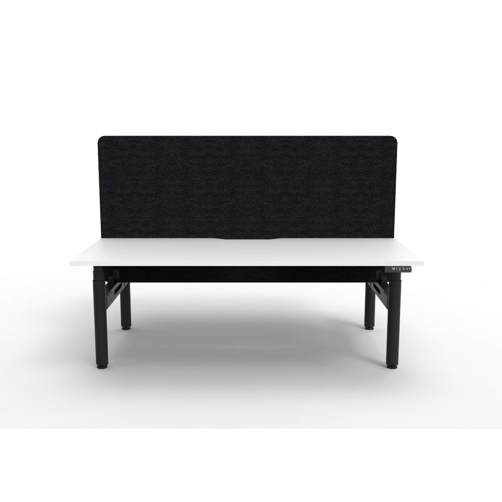 • Electric height adjustable 2 person back to back workstation with White top and Black Satin frame, Black Eco screen.