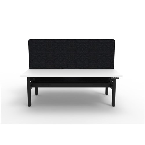 • Electric height adjustable 2 person back to back workstation with White top and Black Satin frame, Black Eco screen and cable tray.