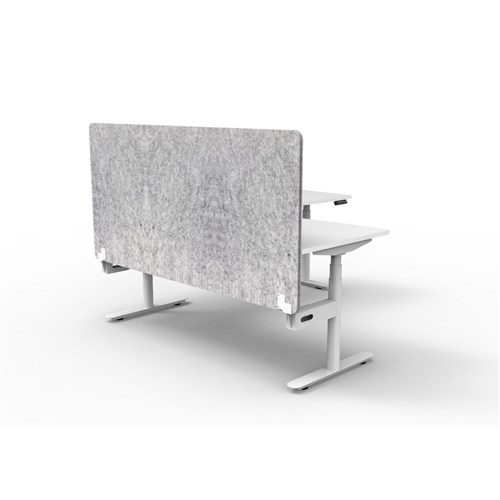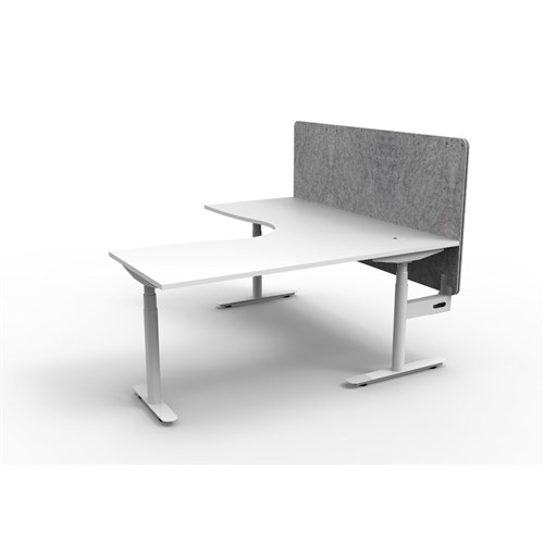 • Electric height adjustable corner workstation with White top and White Satin frame, Grey Eco screen.