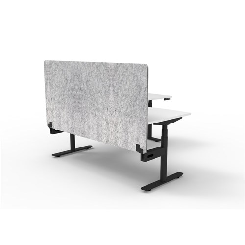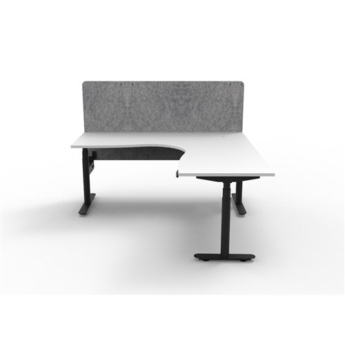 • Electric height adjustable corner workstation with White top and Black Satin frame, Grey Eco screen.