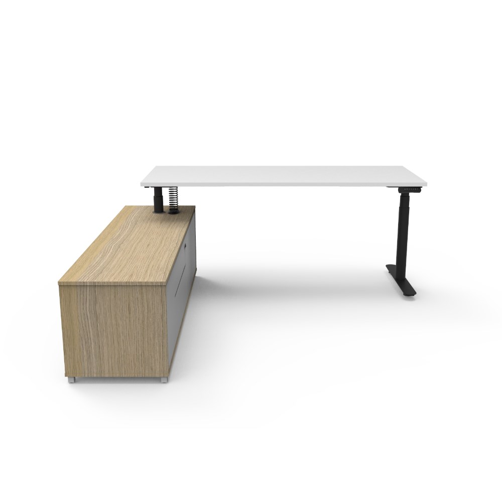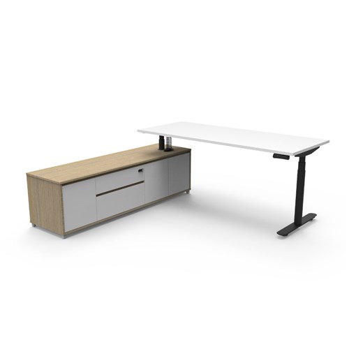 Rapidline Halo+ Executive Desk + LHS Cabinet 2020W x 2011D x 620-1270mmH White/Black