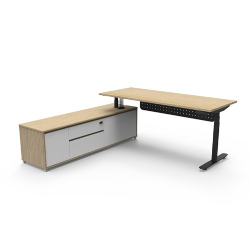 Rapidline Halo+ Executive Desk + LHS Cabinet + Panel 2020W x 1936D x 620-1270mmH Oak/Black