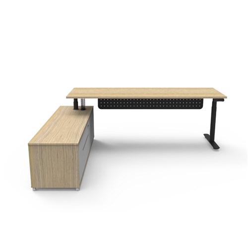 Rapidline Halo+ Executive Desk + LHS Cabinet + Panel 2270W x 1936D x 620-1270mmH Oak/Black