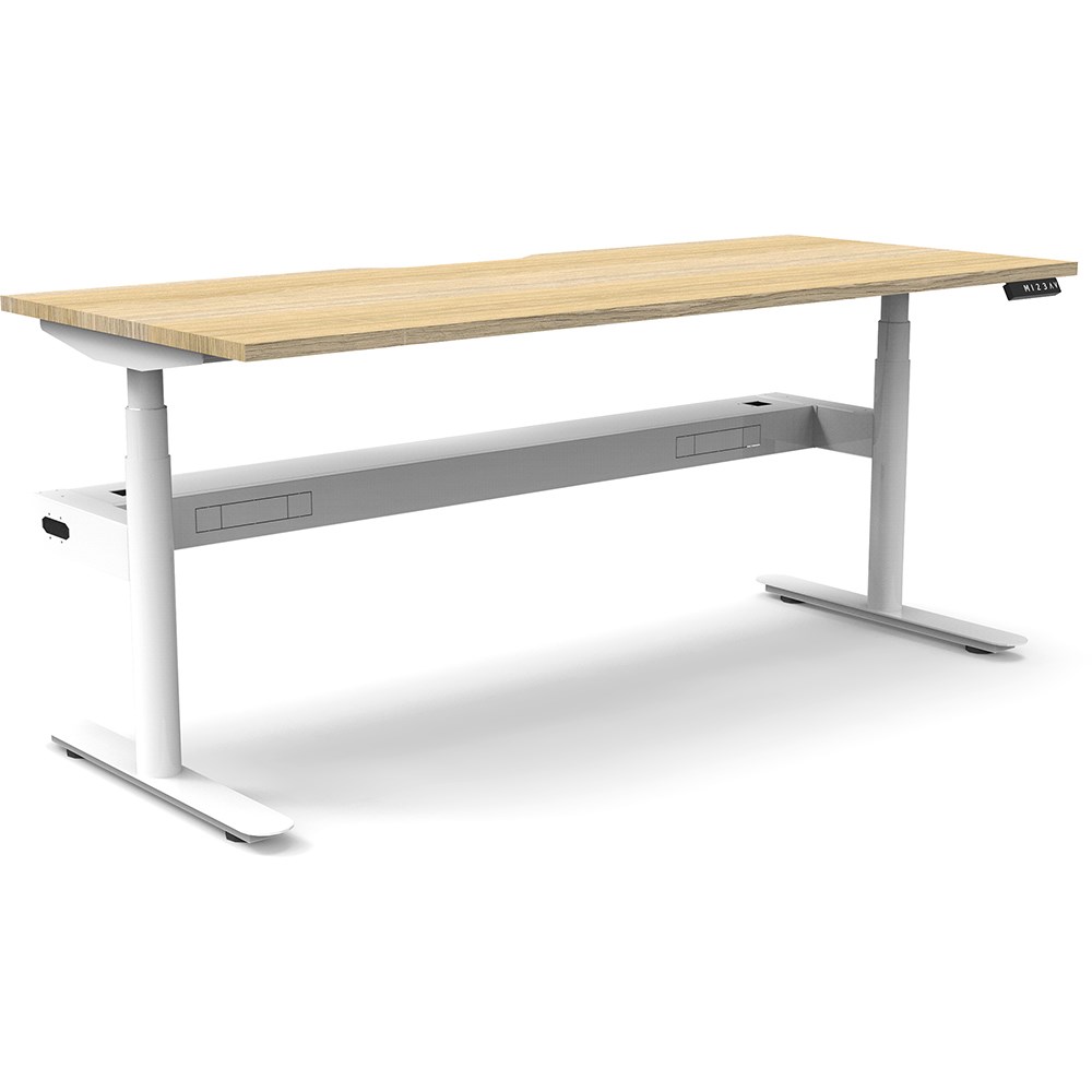 • 70mm diameter round column legs. 700mm wide foot size with adjustable leveling feet, return foot: 700mm. Comes with cable tray for cable management.