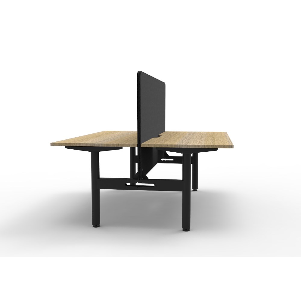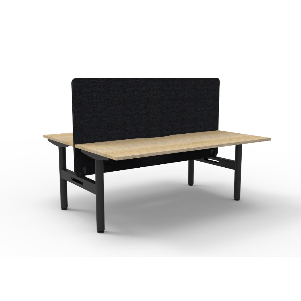 • 2 person back to back workstation with Natural Oak top and Black Satin frame, Black Eco screen.