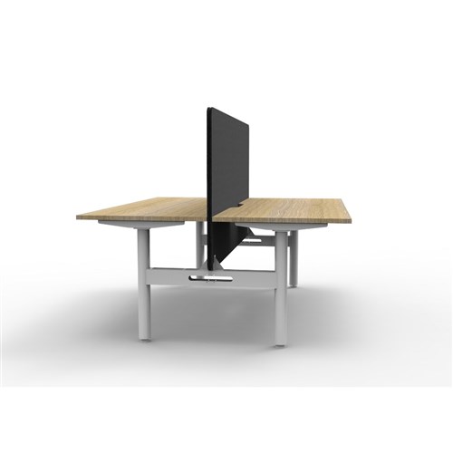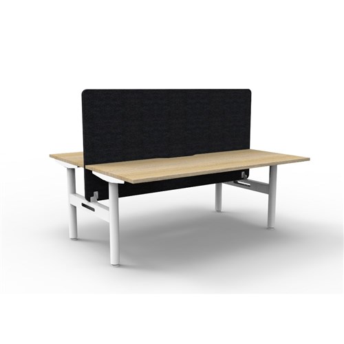 • 2 person back to back workstation with Natural Oak top and White Satin frame, Black Eco screen.